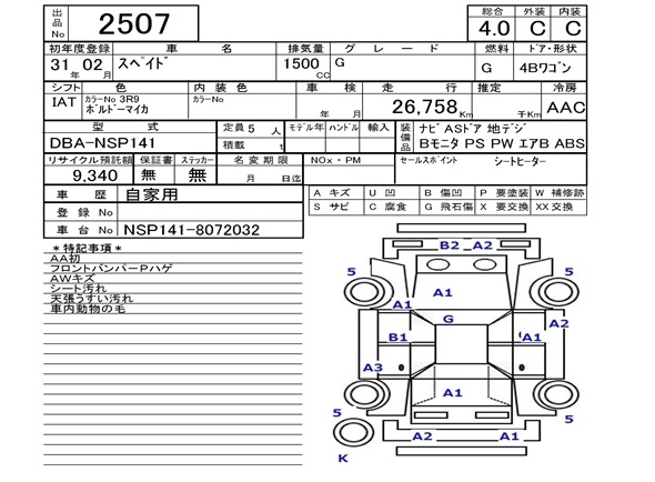 Стартовая цена авто на аукционе 50 000 ¥