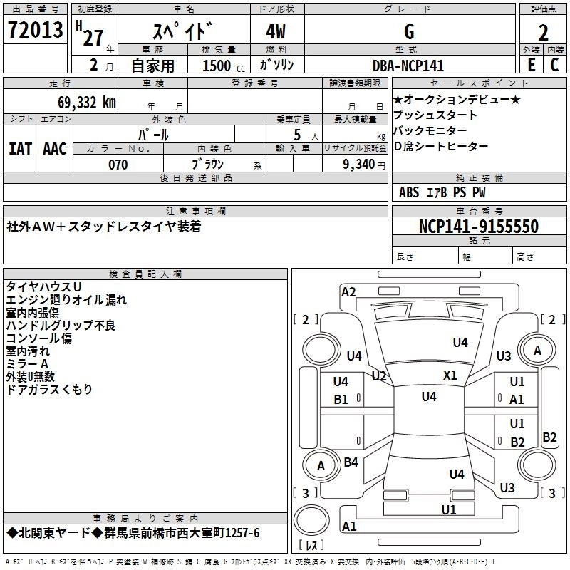 TOYOTA SPADE 2015 г., лот № 72013