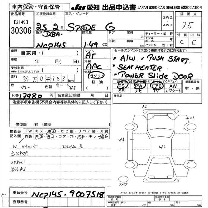 TOYOTA SPADE 2013 г., лот № 30306