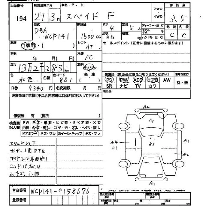 TOYOTA SPADE 2015 г., лот № 194