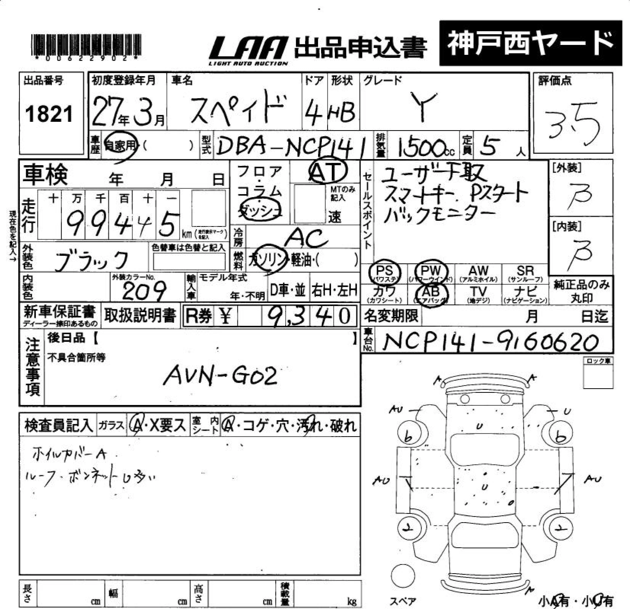 Статус продан Лот 1821 Аукцион LAA Okayama Дата аукциона 20.03.2026