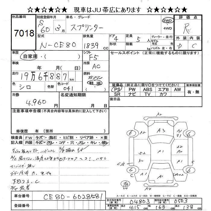 TOYOTA SPRINTER 1985 г., лот № 7018