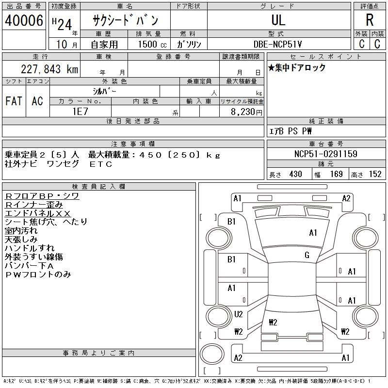 Год выпуска2012 Пробег 228 000 км КузовNCP51V КомплектацияUL