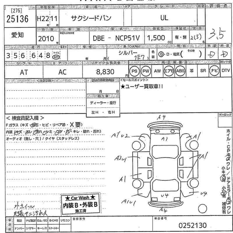 Год выпуска2010 Пробег 357 000 км КузовNCP51V КомплектацияUL