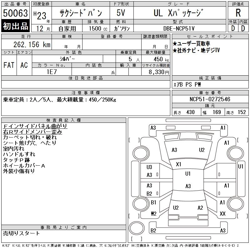 Год выпуска2011 Пробег 262 000 км КузовNCP51V КомплектацияUL X PACKAGE