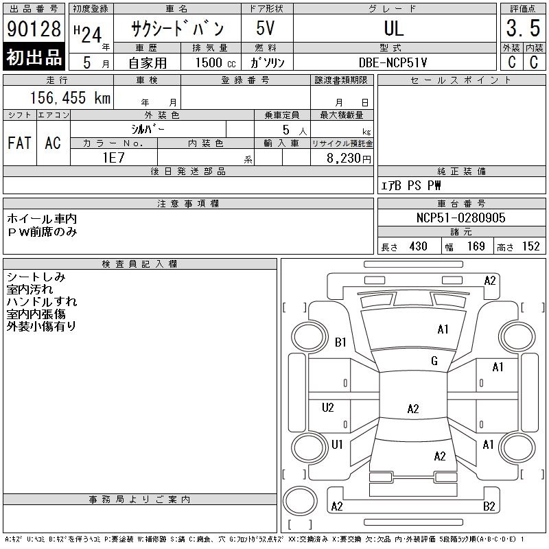 Год выпуска2012 Пробег 156 000 км КузовNCP51V КомплектацияUL