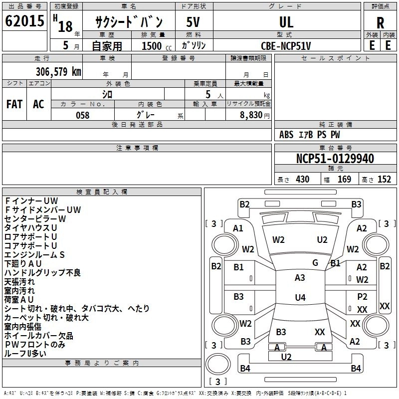 Год выпуска2006 Пробег 307 000 км КузовNCP51V КомплектацияUL