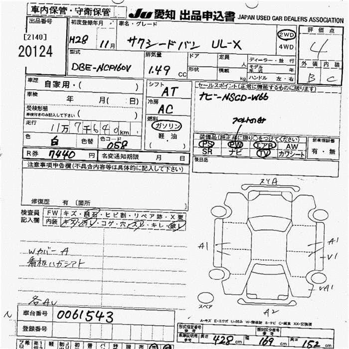 TOYOTA SUCCEED WAGON 2016 г., лот № 20124