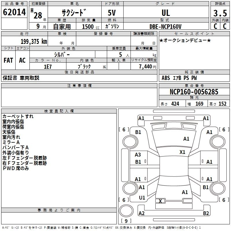 Год выпуска2016 Пробег 199 000 км КузовNCP160V КомплектацияUL