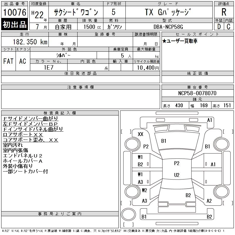 TOYOTA SUCCEED WAGON 2010 г., лот № 10076