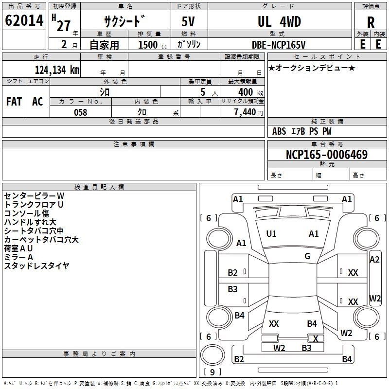 TOYOTA SUCCEED WAGON 2015 г., лот № 62014
