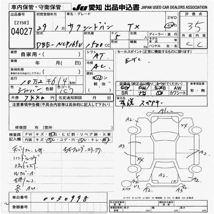 TOYOTA SUCCEED WAGON 2017 г., лот № 4027