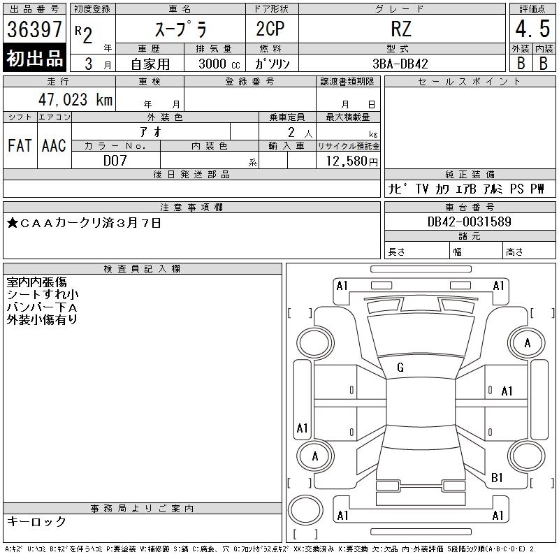 Статус выставлен на аукцион Лот 36397 Аукцион CAA Chubu Дата аукциона 11.03.2026