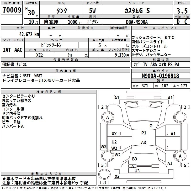 TOYOTA TANK 2018 г., лот № 70009