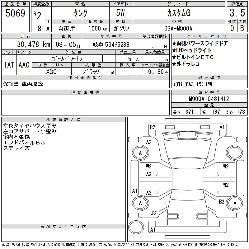 TOYOTA TANK 2020 г., лот № 5069