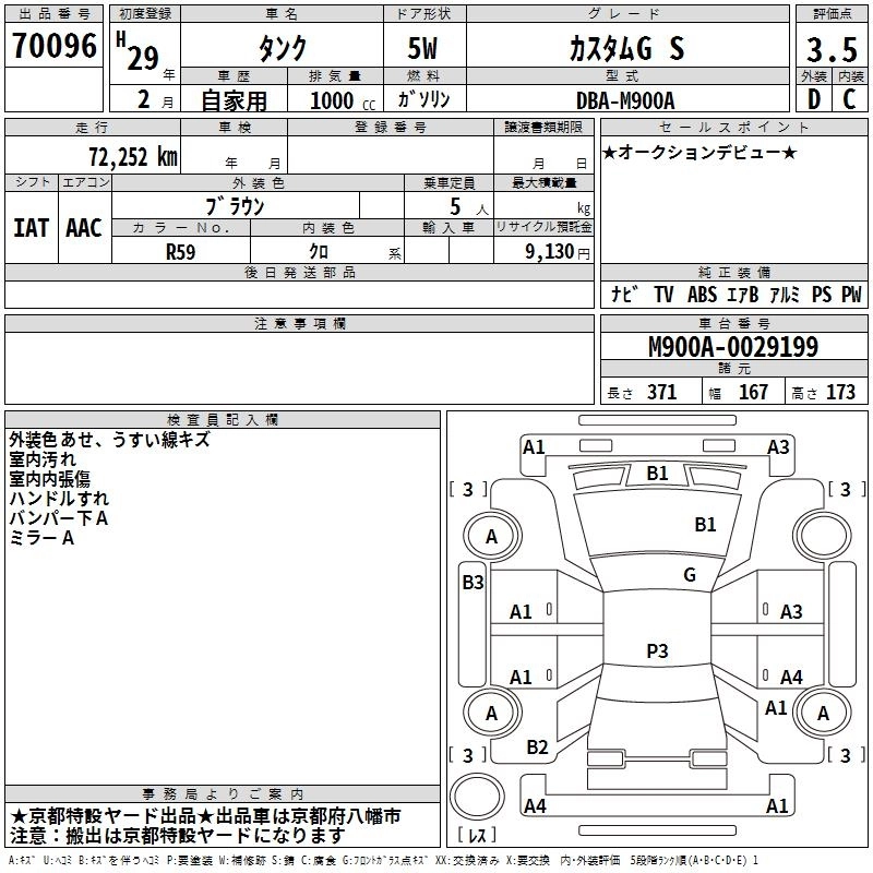 TOYOTA TANK 2017 г., лот № 70096