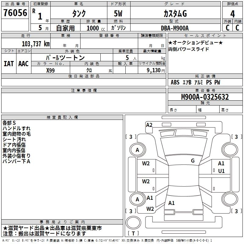 TOYOTA TANK 2019 г., лот № 76056
