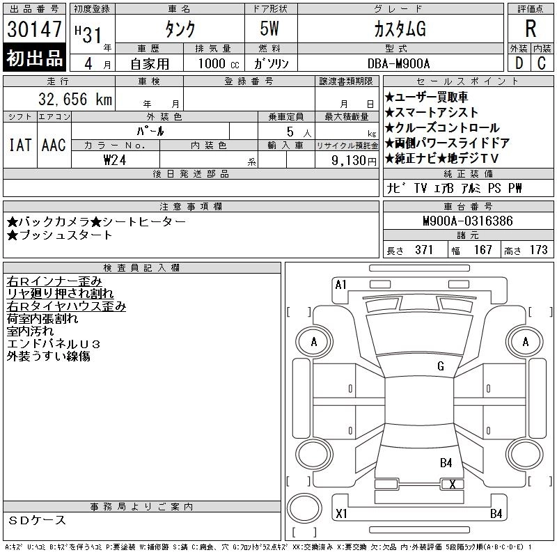 TOYOTA TANK 2019 г., лот № 30147