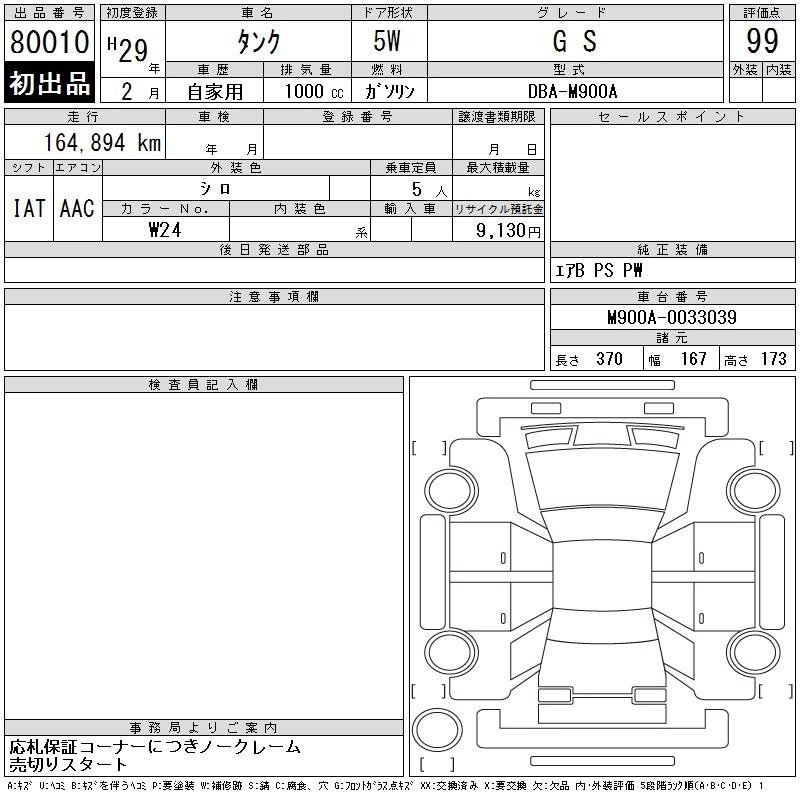 TOYOTA TANK 2017 г., лот № 80010