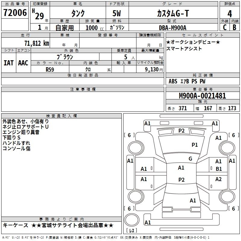 TOYOTA TANK 2017 г., лот № 72006