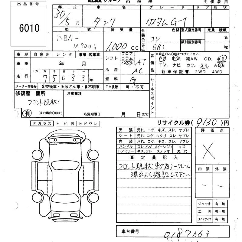 TOYOTA TANK 2018 г., лот № 6010