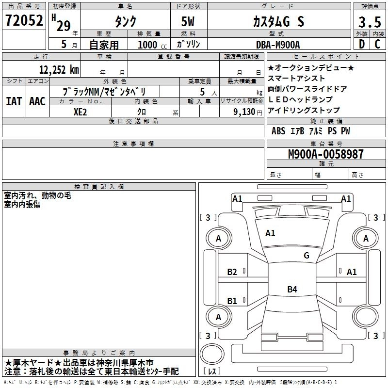 Год выпуска2017 Пробег 12 000 км КузовM900A Комплектация CUSTOM G S