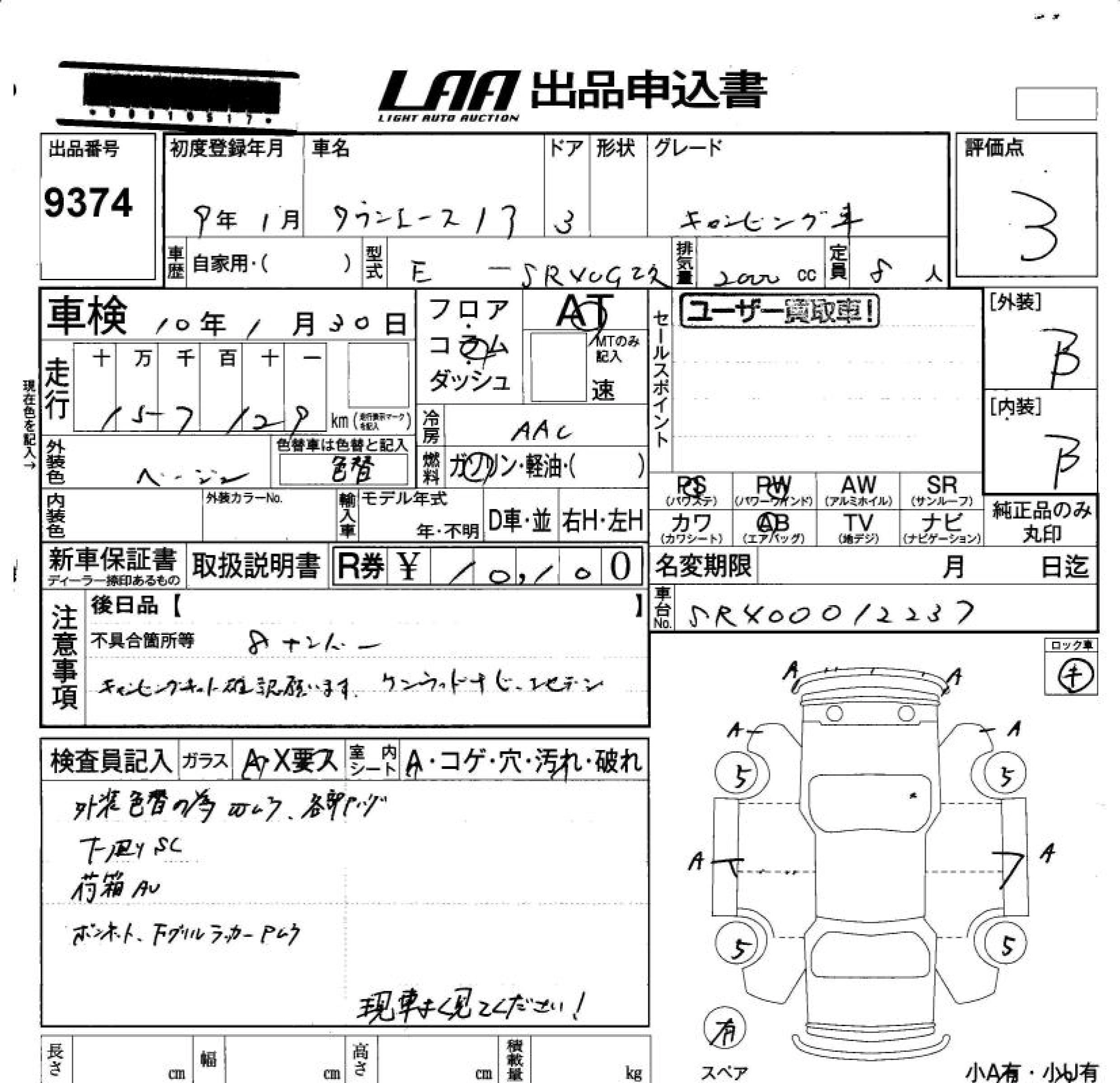 Статус продан Лот 9374 Аукцион LAA Okayama Дата аукциона 13.03.2026