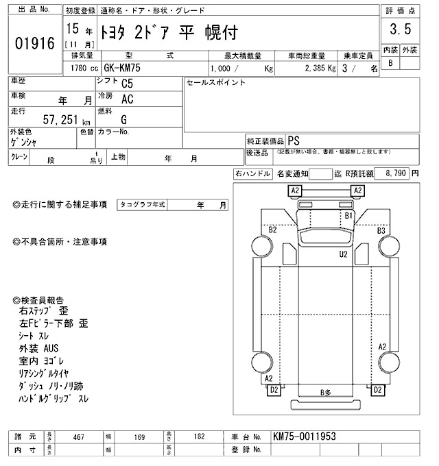 Статус выставлен на аукцион Лот 1916 Аукцион ARAI Oyama VT Дата аукциона 24.01.2026