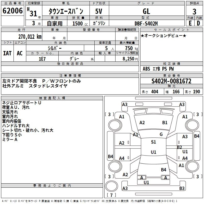 TOYOTA TOWN ACE VAN 2019 г., лот № 62006
