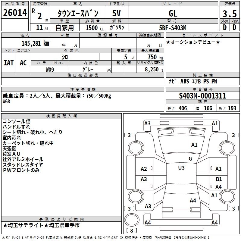 TOYOTA TOWN ACE VAN 2020 г., лот № 26014