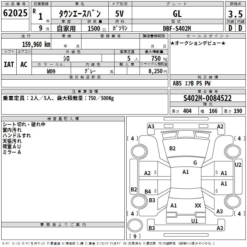 TOYOTA TOWN ACE VAN 2019 г., лот № 62025
