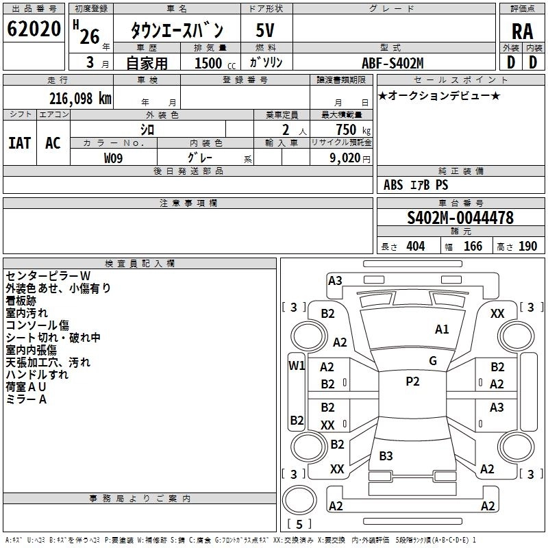 TOYOTA TOWN ACE VAN 2014 г., лот № 62020