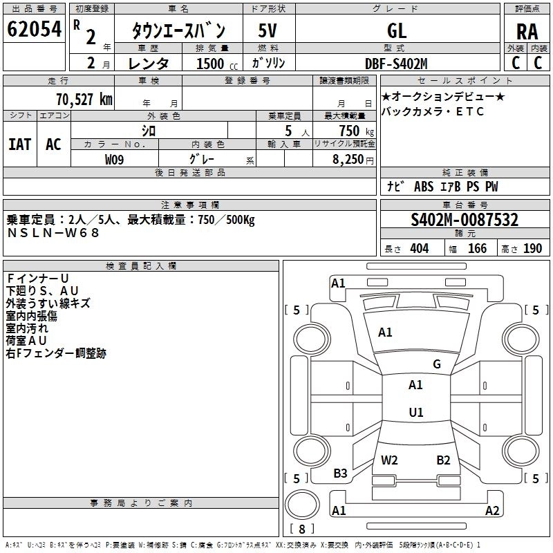 TOYOTA TOWN ACE VAN 2020 г., лот № 62054