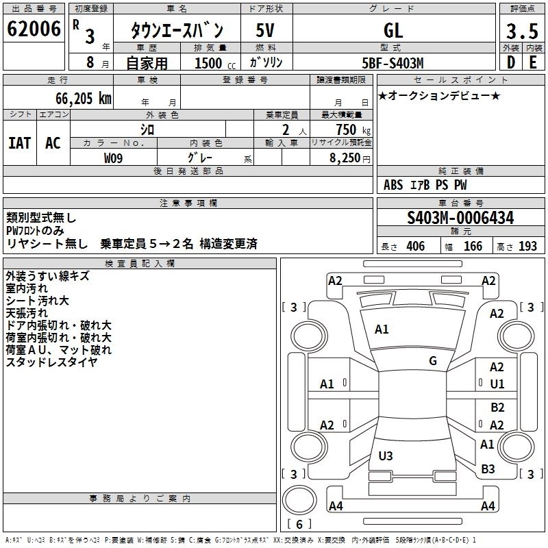 TOYOTA TOWN ACE VAN 2021 г., лот № 62006