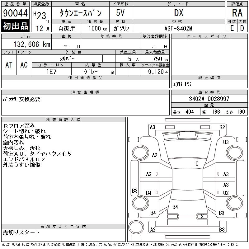 TOYOTA TOWN ACE VAN 2011 г., лот № 90044