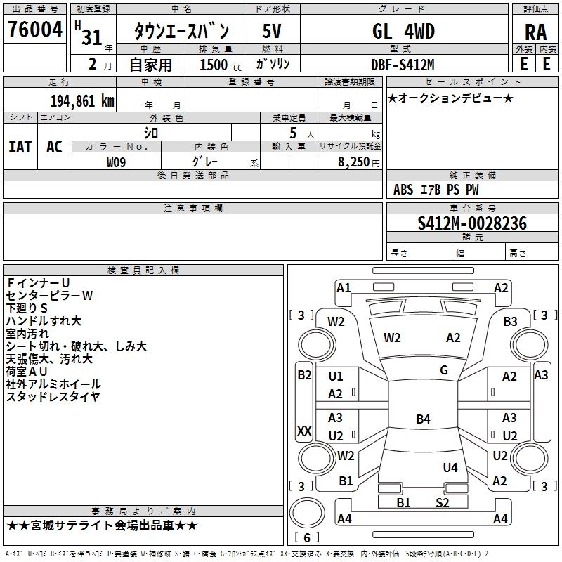 TOYOTA TOWN ACE VAN 2019 г., лот № 76004