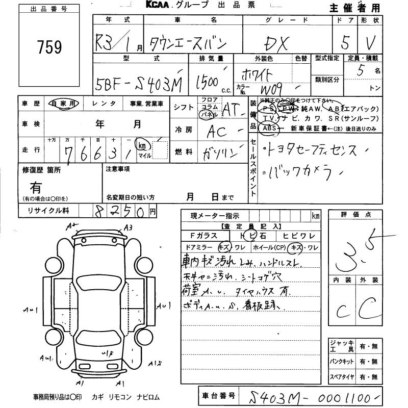 TOYOTA TOWN ACE VAN 2021 г., лот № 759