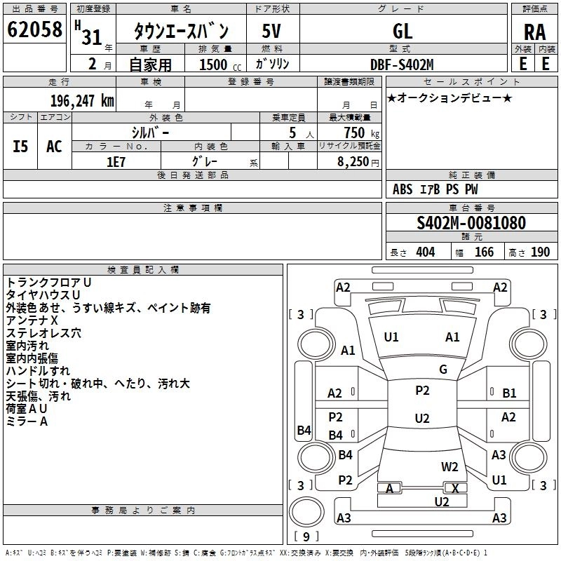 TOYOTA TOWN ACE VAN 2019 г., лот № 62058