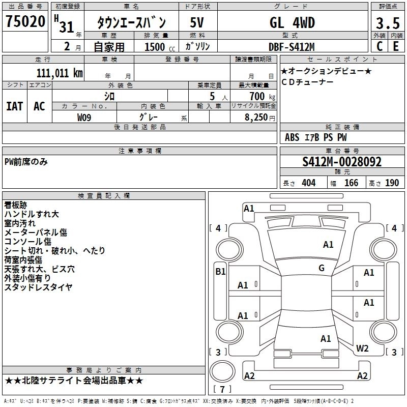 TOYOTA TOWN ACE VAN 2019 г., лот № 75020