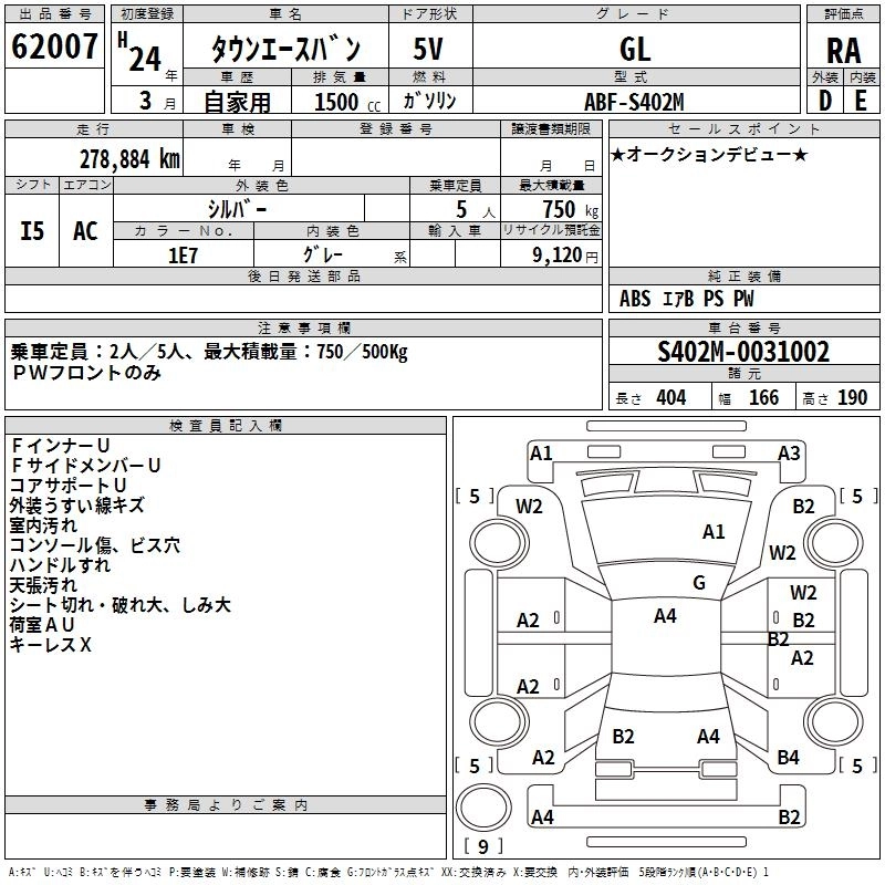 TOYOTA TOWN ACE VAN 2012 г., лот № 62007