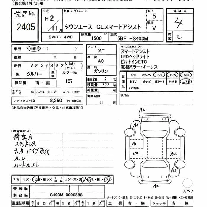 TOYOTA TOWN ACE 2020 г., лот № 2405