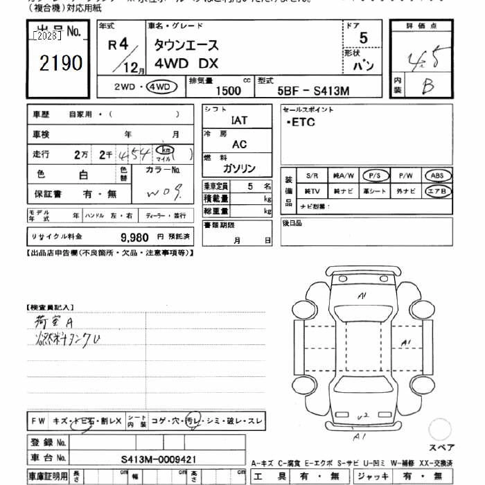 TOYOTA TOWN ACE 2022 г., лот № 2190