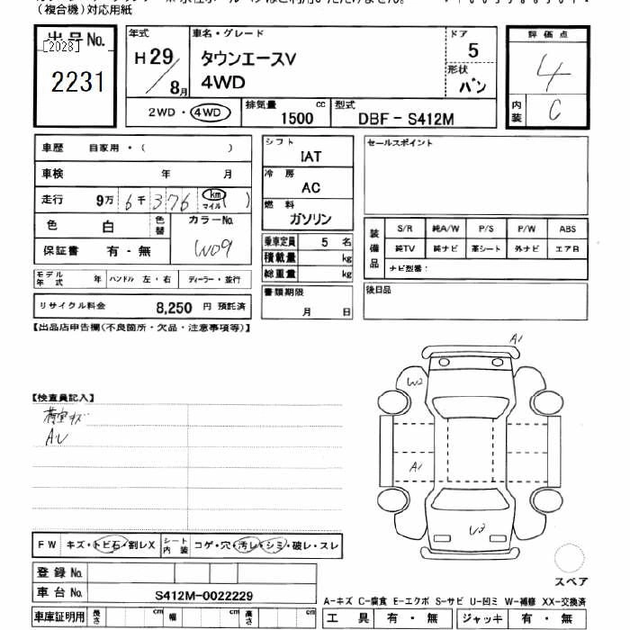 TOYOTA TOWN ACE 2017 г., лот № 2231