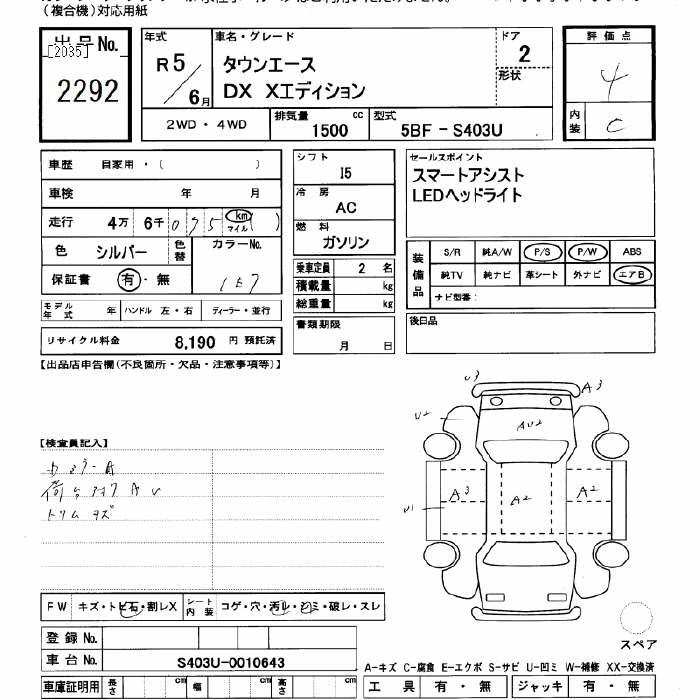 TOYOTA TOWN ACE 2023 г., лот № 2292