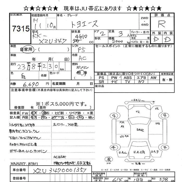 Статус продан Лот 7315 Аукцион JU Hokkaido Дата аукциона 23.01.2026