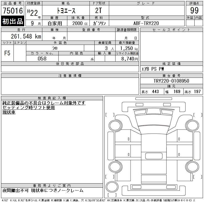 Статус выставлен на аукцион Лот 75016 Аукцион CAA Chubu Дата аукциона 11.03.2026