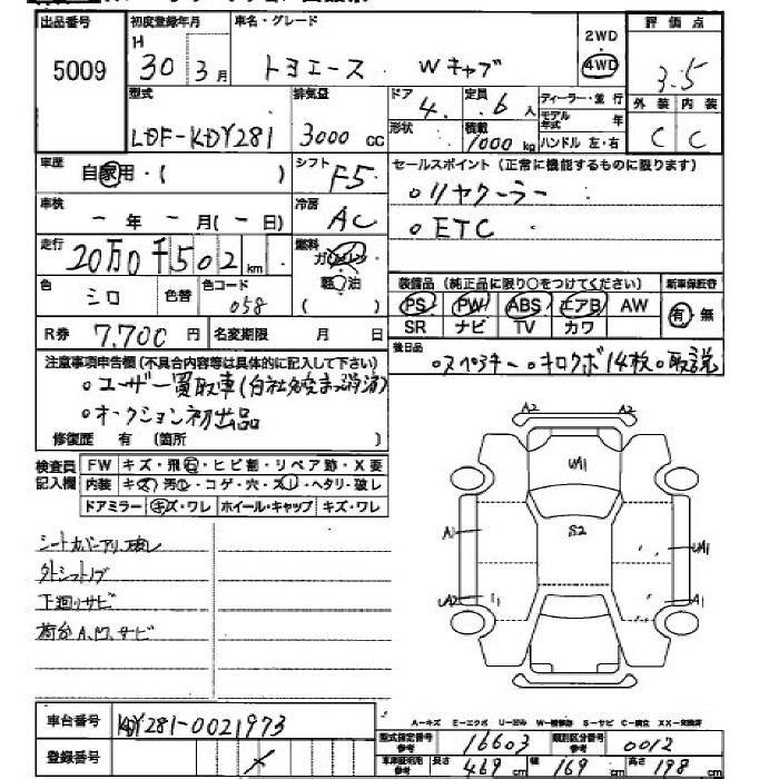 TOYOTA TOYOACE 2018 г., лот № 5009