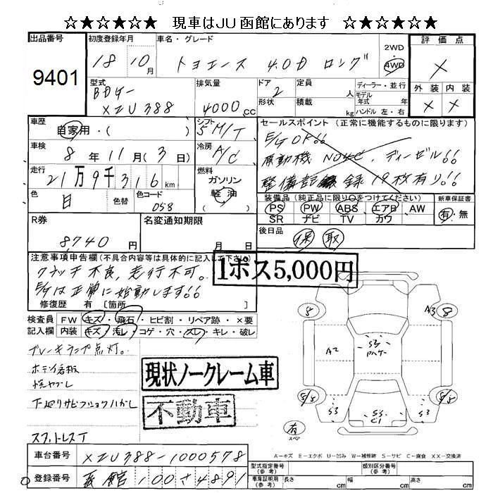Статус выставлен на аукцион Лот 9401 Аукцион JU Hokkaido Дата аукциона 13.03.2026