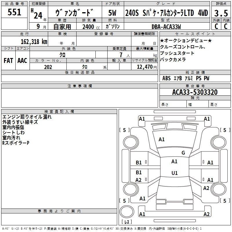 Год выпуска2012 Пробег 162 000 км КузовACA33W Комплектация240S S PACK * ALCANTA -4WD