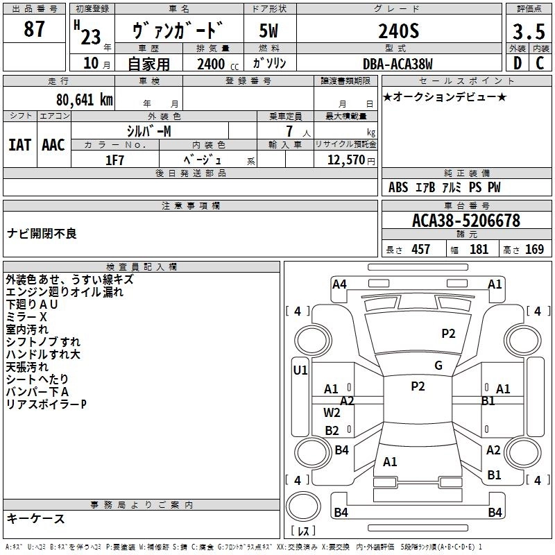 Год выпуска2011 Пробег 81 000 км КузовACA38W Комплектация240S